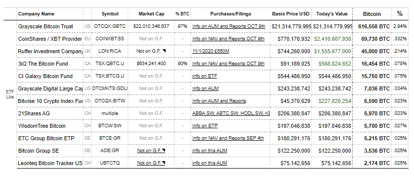 But it’s not just MicroStrategy that’s causing liquidity to dry up. Galaxy Digital, Square, Hut 8 Mining, among many others, all possess large sums of Bitcoin.