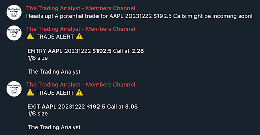 This momentum trade alert (with a preemptive notification) was sent on December 12, 2023. To illustrate the timeline here: