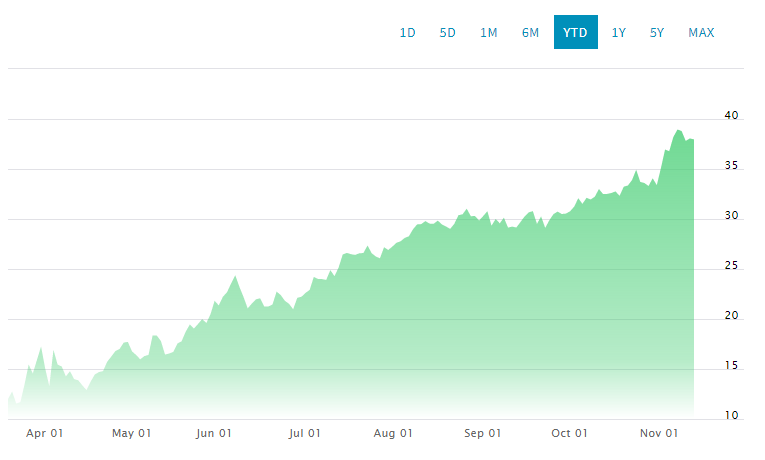 - The company has had a phenomenal year, boasting a growth over 85% YTD.